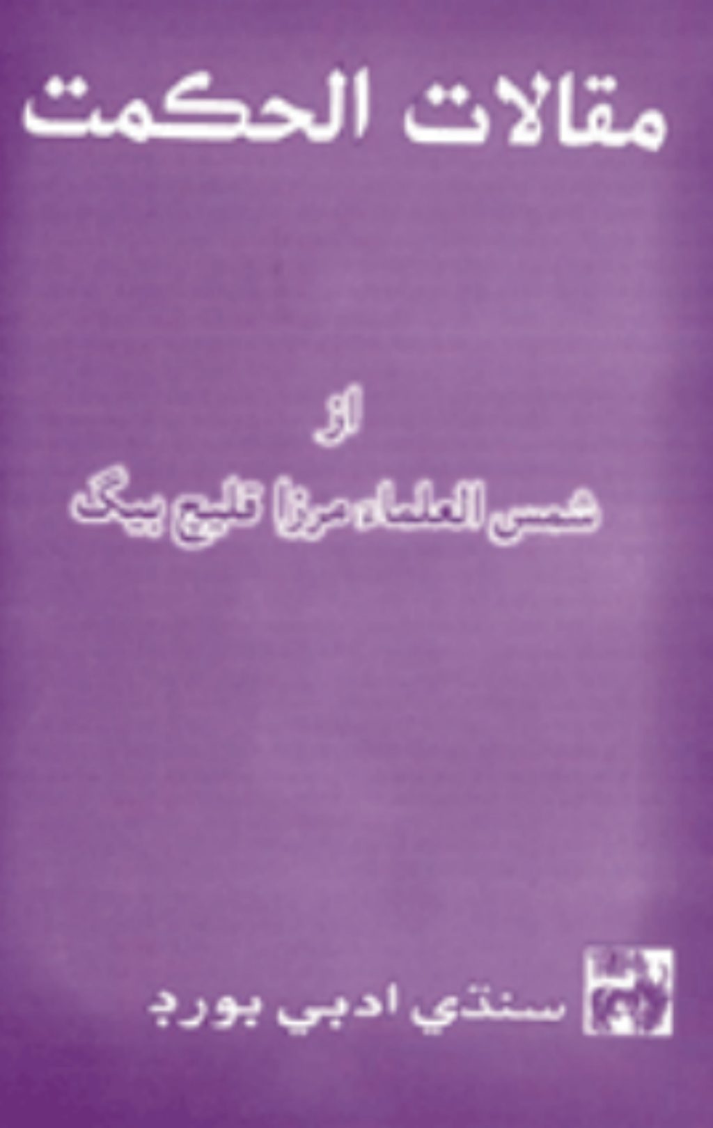 مقالات الحڪمت:- مصنف لارڊ بيڪن، مرتجم مرحوم مرزاقليچ بيگ؛ صفحا 236؛ ڇپائي، ڪاغذ ۽ ڪَور معياري قيمت.-8- 2 روپيا؛ ڇپيندڙ...